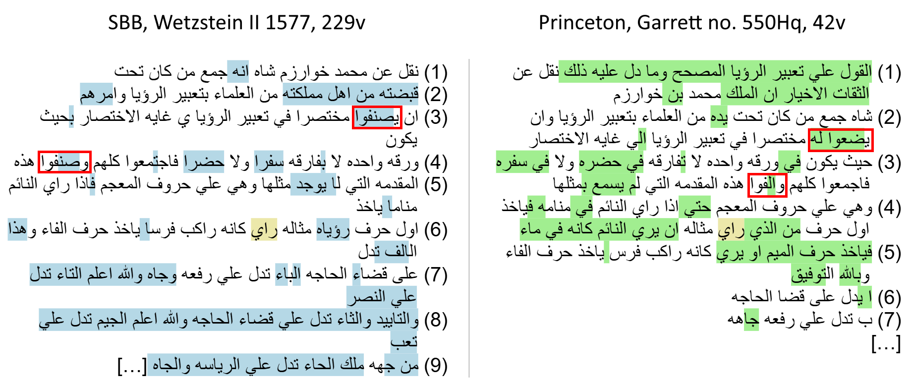 SBB, Wetzstein II 1577, 229v (left) Princeton, Garrett no. 550Hq, 42v (right)
